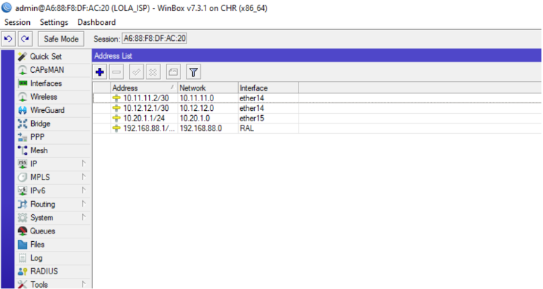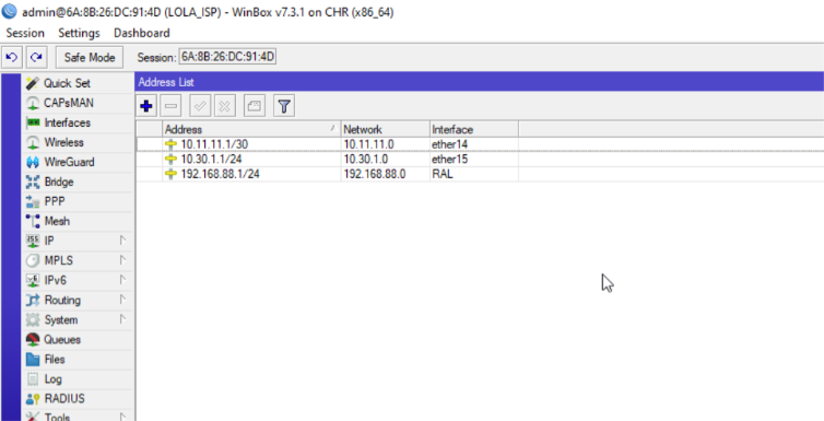 Creando direcciones y rutas en R2 (A6:88:F8:DF:AC:20)
