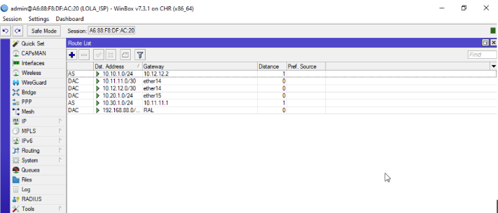Se crean las rutas para poder acceder a R2 y R3 y para poder acceder a la RAL 1 desde otra red. Tal y como lo he organizado la RAL 1 está en la interfaz ether15.